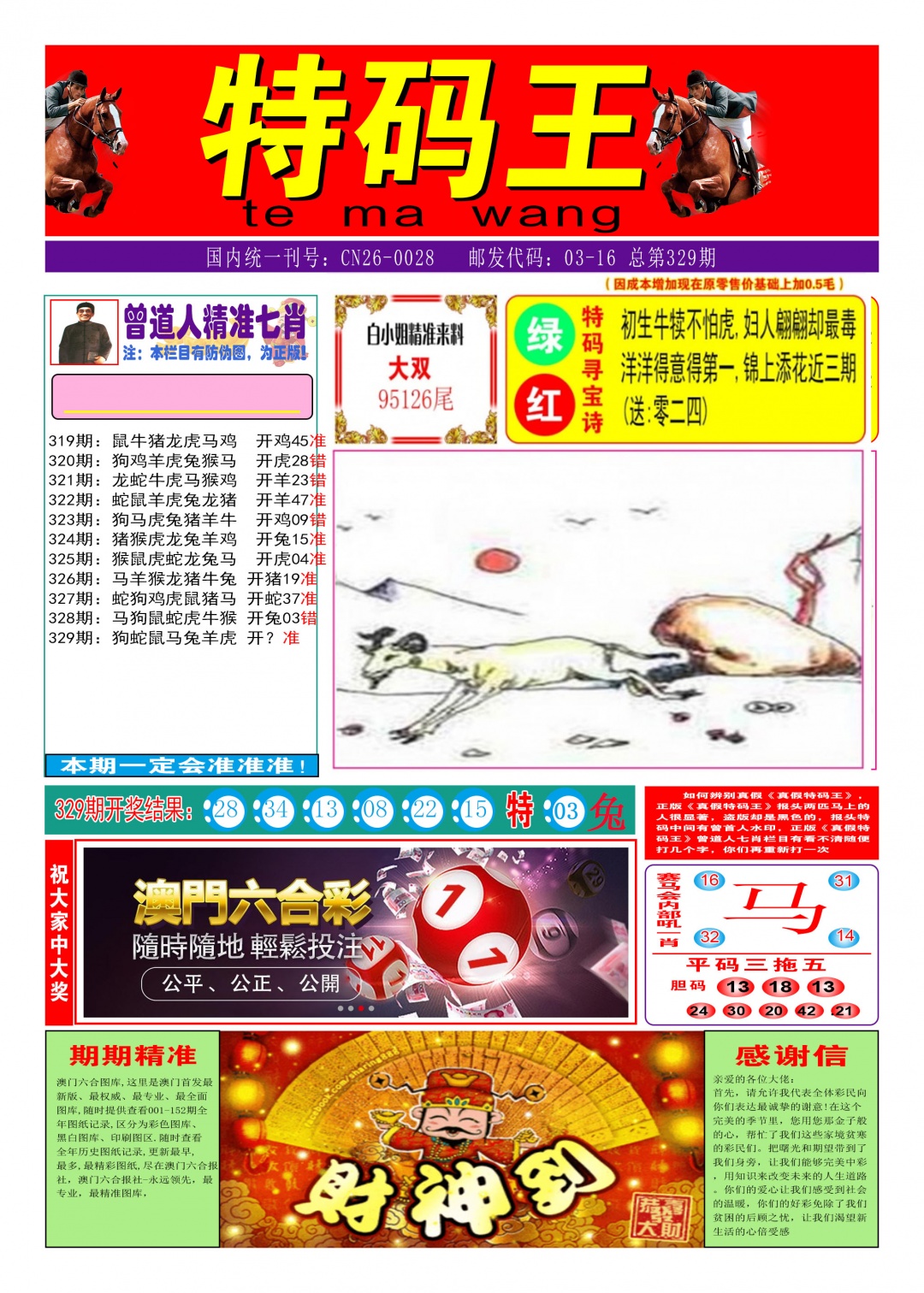 | 329期:④肖 | 虎兔蛇猪 | 开:?00中 |