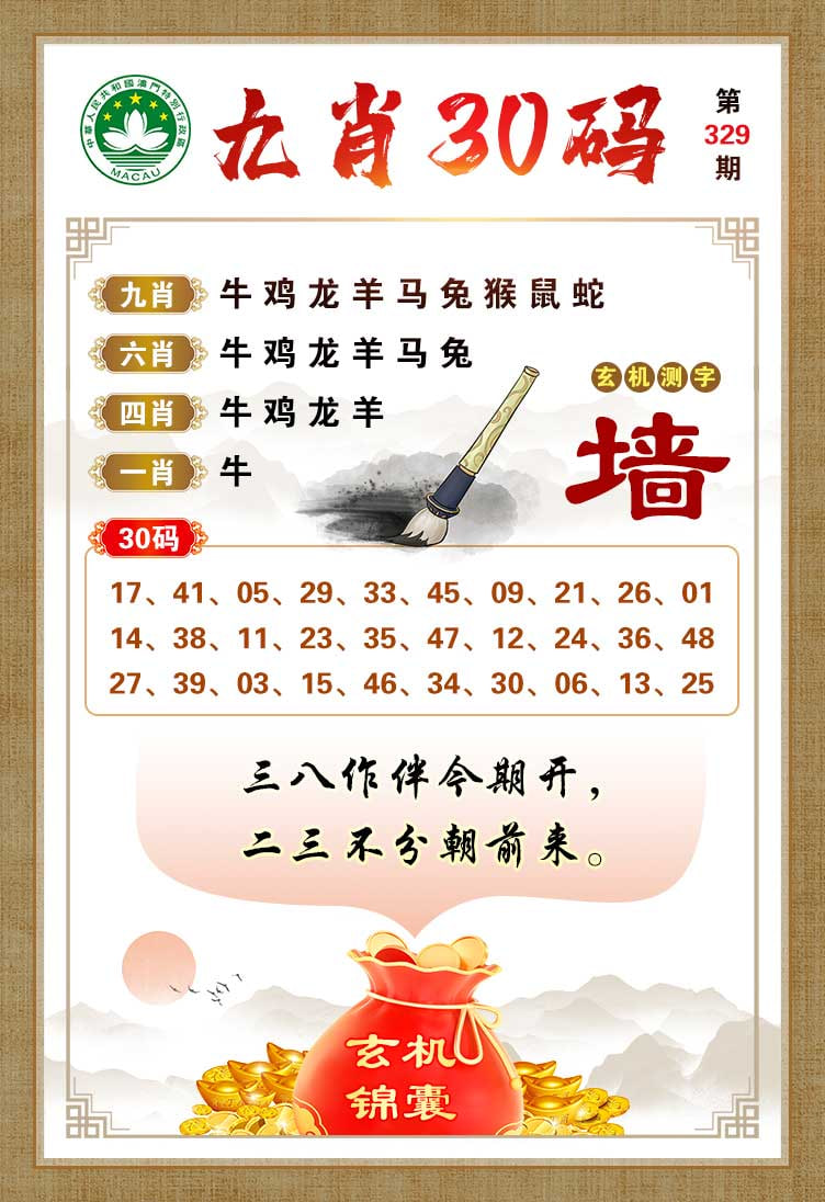 | 329期:⑨肖 | 虎兔蛇猪羊龙鸡马鼠 | 开:?00中 |